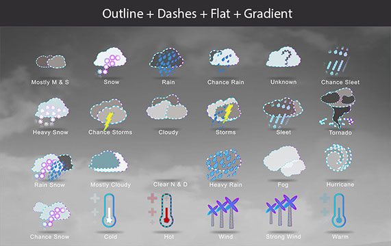 Style Icons: Outline, Dashes, Dashes Animation, Flat, Color, Gradient, Polygon, With Day and Night.